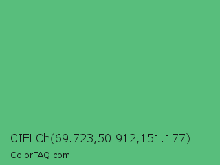 CIELCh 69.723,50.912,151.177 Color is a normal green color and the nearest color is Emerald #50c878. Hex code #58be7c and RGB value is rgb(88,190,124). In RGB color space, this color is composed of 35% red, 75% green, 49% blue, In CMYK color space, this color is composed of 54% cyan, 0% magenta, 35% yellow , 25% black , In HSL color space, this color has a hue angle of 141° , 44% saturation and 55% lightness.