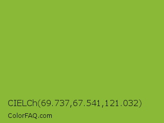 CIELCh 69.737,67.541,121.032 Color is a normal green color and the nearest color is Sushi #87ab39. Hex code #8ab937 and RGB value is rgb(138,185,55). In RGB color space, this color is composed of 54% red, 73% green, 22% blue, In CMYK color space, this color is composed of 25% cyan, 0% magenta, 70% yellow , 27% black , In HSL color space, this color has a hue angle of 82° , 54% saturation and 47% lightness.