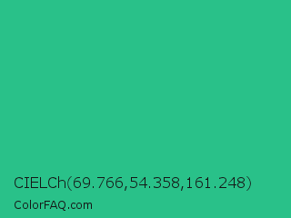 CIELCh 69.766,54.358,161.248 Color is a normal green color and the nearest color is Mountain Meadow #30ba8f. Hex code #29c189 and RGB value is rgb(41,193,137). In RGB color space, this color is composed of 16% red, 76% green, 54% blue, In CMYK color space, this color is composed of 79% cyan, 0% magenta, 29% yellow , 24% black , In HSL color space, this color has a hue angle of 158° , 65% saturation and 46% lightness.