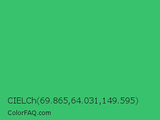 CIELCh 69.865,64.031,149.595 Color is a normal green color and the nearest color is UFO Green #3cd070. Hex code #39c26d and RGB value is rgb(57,194,109). In RGB color space, this color is composed of 22% red, 76% green, 43% blue, In CMYK color space, this color is composed of 71% cyan, 0% magenta, 44% yellow , 24% black , In HSL color space, this color has a hue angle of 143° , 55% saturation and 49% lightness.