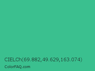 CIELCh 69.882,49.629,163.074 Color is a normal green color and the nearest color is Mountain Meadow #30ba8f. Hex code #3ac08f and RGB value is rgb(58,192,143). In RGB color space, this color is composed of 23% red, 75% green, 56% blue, In CMYK color space, this color is composed of 70% cyan, 0% magenta, 26% yellow , 25% black , In HSL color space, this color has a hue angle of 158° , 54% saturation and 49% lightness.