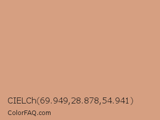CIELCh 69.949,28.878,54.941 Color is a light orange color and the nearest color is Tumbleweed #dea681. Hex code #d69f81 and RGB value is rgb(214,159,129). In RGB color space, this color is composed of 84% red, 62% green, 51% blue, In CMYK color space, this color is composed of 0% cyan, 26% magenta, 40% yellow , 16% black , In HSL color space, this color has a hue angle of 21° , 51% saturation and 67% lightness.
