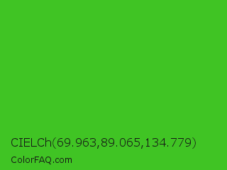 CIELCh 69.963,89.065,134.779 Color is a normal green color and the nearest color is Harlequin Green #46cb18. Hex code #40c424 and RGB value is rgb(64,196,36). In RGB color space, this color is composed of 25% red, 77% green, 14% blue, In CMYK color space, this color is composed of 67% cyan, 0% magenta, 82% yellow , 23% black , In HSL color space, this color has a hue angle of 110° , 69% saturation and 45% lightness.