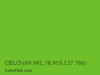 CIELCh 69.991,78.919,127.766 Color is a normal green color and the nearest color is Green RYB #66b032. Hex code #6ebf29 and RGB value is rgb(110,191,41). In RGB color space, this color is composed of 43% red, 75% green, 16% blue, In CMYK color space, this color is composed of 42% cyan, 0% magenta, 79% yellow , 25% black , In HSL color space, this color has a hue angle of 92° , 65% saturation and 45% lightness.