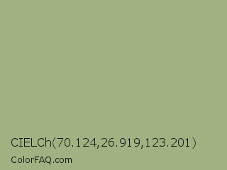 CIELCh 70.124,26.919,123.201 Color is a normal green color and the nearest color is Sage #9ea587. Hex code #a0b282 and RGB value is rgb(160,178,130). In RGB color space, this color is composed of 63% red, 70% green, 51% blue, In CMYK color space, this color is composed of 10% cyan, 0% magenta, 27% yellow , 30% black , In HSL color space, this color has a hue angle of 83° , 24% saturation and 60% lightness.