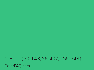 CIELCh 70.143,56.497,156.748 Color is a normal green color and the nearest color is Mountain Meadow #30ba8f. Hex code #36c281 and RGB value is rgb(54,194,129). In RGB color space, this color is composed of 21% red, 76% green, 51% blue, In CMYK color space, this color is composed of 72% cyan, 0% magenta, 34% yellow , 24% black , In HSL color space, this color has a hue angle of 152° , 56% saturation and 49% lightness.