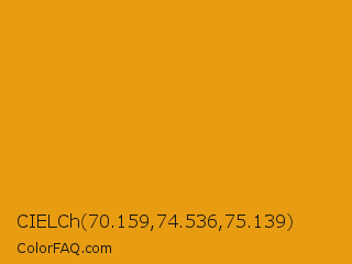 CIELCh 70.159,74.536,75.139 Color is a normal orange color and the nearest color is Gamboge #e49b0f. Hex code #e89c12 and RGB value is rgb(232,156,18). In RGB color space, this color is composed of 91% red, 61% green, 7% blue, In CMYK color space, this color is composed of 0% cyan, 33% magenta, 92% yellow , 9% black , In HSL color space, this color has a hue angle of 39° , 86% saturation and 49% lightness.