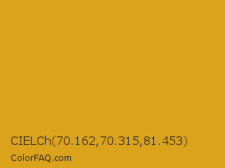 CIELCh 70.162,70.315,81.453 Color is a normal orange color and the nearest color is Golden Grass #daa520. Hex code #dba21b and RGB value is rgb(219,162,27). In RGB color space, this color is composed of 86% red, 64% green, 11% blue, In CMYK color space, this color is composed of 0% cyan, 26% magenta, 88% yellow , 14% black , In HSL color space, this color has a hue angle of 42° , 78% saturation and 48% lightness.