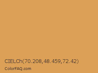 CIELCh 70.208,48.459,72.42 Color is a normal orange color and the nearest color is Di Serria #db995e. Hex code #dca057 and RGB value is rgb(220,160,87). In RGB color space, this color is composed of 86% red, 63% green, 34% blue, In CMYK color space, this color is composed of 0% cyan, 27% magenta, 60% yellow , 14% black , In HSL color space, this color has a hue angle of 33° , 66% saturation and 60% lightness.