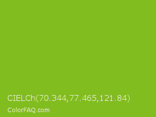 CIELCh 70.344,77.465,121.84 Color is a normal green color and the nearest color is Lima #76bd17. Hex code #82bd1f and RGB value is rgb(130,189,31). In RGB color space, this color is composed of 51% red, 74% green, 12% blue, In CMYK color space, this color is composed of 31% cyan, 0% magenta, 84% yellow , 26% black , In HSL color space, this color has a hue angle of 82° , 72% saturation and 43% lightness.