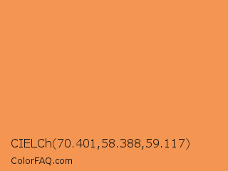 CIELCh 70.401,58.388,59.117 Color is a light orange color and the nearest color is Tan Hide #fa9d5a. Hex code #f49551 and RGB value is rgb(244,149,81). In RGB color space, this color is composed of 96% red, 58% green, 32% blue, In CMYK color space, this color is composed of 0% cyan, 39% magenta, 67% yellow , 4% black , In HSL color space, this color has a hue angle of 25° , 88% saturation and 64% lightness.