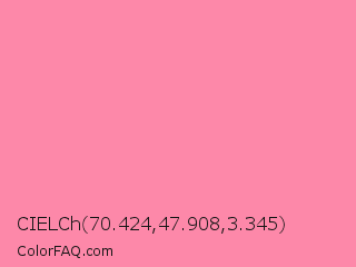 CIELCh 70.424,47.908,3.345 Color is a light rose color and the nearest color is Tickle Me Pink #fc89ac. Hex code #fd88a9 and RGB value is rgb(253,136,169). In RGB color space, this color is composed of 99% red, 53% green, 66% blue, In CMYK color space, this color is composed of 0% cyan, 46% magenta, 33% yellow , 1% black , In HSL color space, this color has a hue angle of 343° , 97% saturation and 76% lightness.