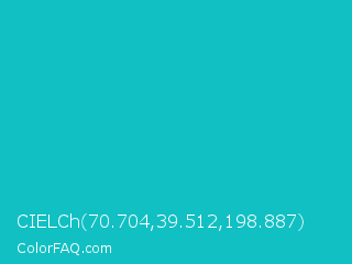 CIELCh 70.704,39.512,198.887 Color is a normal cyan color and the nearest color is Java #1fc2c2. Hex code #11c0c3 and RGB value is rgb(17,192,195). In RGB color space, this color is composed of 7% red, 75% green, 76% blue, In CMYK color space, this color is composed of 91% cyan, 2% magenta, 0% yellow , 24% black , In HSL color space, this color has a hue angle of 181° , 84% saturation and 42% lightness.