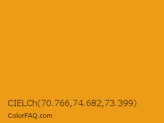 CIELCh 70.766,74.682,73.399 Color is a normal orange color and the nearest color is Marigold #eaa221. Hex code #ed9c18 and RGB value is rgb(237,156,24). In RGB color space, this color is composed of 93% red, 61% green, 9% blue, In CMYK color space, this color is composed of 0% cyan, 34% magenta, 90% yellow , 7% black , In HSL color space, this color has a hue angle of 37° , 86% saturation and 51% lightness.