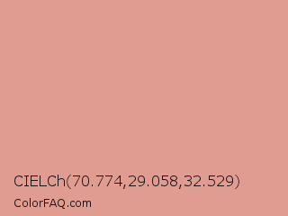 CIELCh 70.774,29.058,32.529 Color is a light red color and the nearest color is Petite Orchid #db9690. Hex code #e19c92 and RGB value is rgb(225,156,146). In RGB color space, this color is composed of 88% red, 61% green, 57% blue, In CMYK color space, this color is composed of 0% cyan, 31% magenta, 35% yellow , 12% black , In HSL color space, this color has a hue angle of 8° , 57% saturation and 73% lightness.