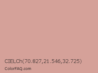 CIELCh 70.827,21.546,32.725 Color is a light red color and the nearest color is Eunry #cfa39d. Hex code #d5a199 and RGB value is rgb(213,161,153). In RGB color space, this color is composed of 84% red, 63% green, 60% blue, In CMYK color space, this color is composed of 0% cyan, 24% magenta, 28% yellow , 16% black , In HSL color space, this color has a hue angle of 8° , 42% saturation and 72% lightness.