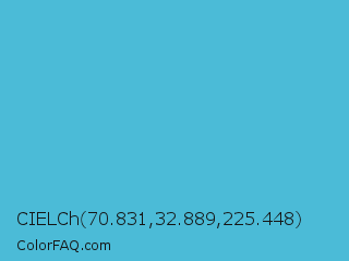 CIELCh 70.831,32.889,225.448 Color is a normal cyan color and the nearest color is Sea Serpent #4bc7cf. Hex code #4bbbd7 and RGB value is rgb(75,187,215). In RGB color space, this color is composed of 29% red, 73% green, 84% blue, In CMYK color space, this color is composed of 65% cyan, 13% magenta, 0% yellow , 16% black , In HSL color space, this color has a hue angle of 192° , 64% saturation and 57% lightness.