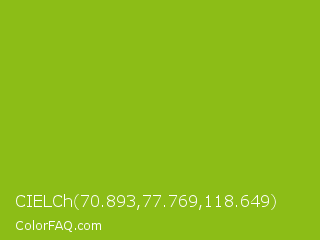 CIELCh 70.893,77.769,118.649 Color is a normal lime color and the nearest color is Lima #76bd17. Hex code #8cbd17 and RGB value is rgb(140,189,23). In RGB color space, this color is composed of 55% red, 74% green, 9% blue, In CMYK color space, this color is composed of 26% cyan, 0% magenta, 88% yellow , 26% black , In HSL color space, this color has a hue angle of 78° , 78% saturation and 42% lightness.