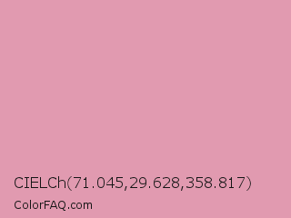 CIELCh 71.045,29.628,358.817 Color is a light rose color and the nearest color is Light Thulian Pink #e68fac. Hex code #e19ab0 and RGB value is rgb(225,154,176). In RGB color space, this color is composed of 88% red, 60% green, 69% blue, In CMYK color space, this color is composed of 0% cyan, 32% magenta, 22% yellow , 12% black , In HSL color space, this color has a hue angle of 341° , 54% saturation and 74% lightness.