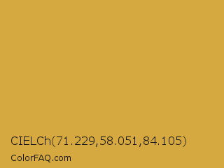 CIELCh 71.229,58.051,84.105 Color is a normal orange color and the nearest color is Gold Metallic #d4af37. Hex code #d5a840 and RGB value is rgb(213,168,64). In RGB color space, this color is composed of 84% red, 66% green, 25% blue, In CMYK color space, this color is composed of 0% cyan, 21% magenta, 70% yellow , 16% black , In HSL color space, this color has a hue angle of 42° , 64% saturation and 54% lightness.