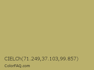 CIELCh 71.249,37.103,99.857 Color is a normal yellow color and the nearest color is Gimblet #b8b56a. Hex code #bab06b and RGB value is rgb(186,176,107). In RGB color space, this color is composed of 73% red, 69% green, 42% blue, In CMYK color space, this color is composed of 0% cyan, 5% magenta, 42% yellow , 27% black , In HSL color space, this color has a hue angle of 52° , 36% saturation and 57% lightness.