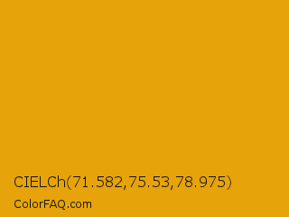 CIELCh 71.582,75.53,78.975 Color is a normal orange color and the nearest color is Gamboge #e49b0f. Hex code #e6a30a and RGB value is rgb(230,163,10). In RGB color space, this color is composed of 90% red, 64% green, 4% blue, In CMYK color space, this color is composed of 0% cyan, 29% magenta, 96% yellow , 10% black , In HSL color space, this color has a hue angle of 42° , 92% saturation and 47% lightness.