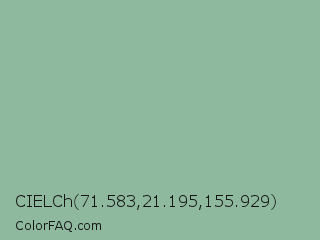 CIELCh 71.583,21.195,155.929 Color is a light green color and the nearest color is Summer Green #96bbab. Hex code #8fb99f and RGB value is rgb(143,185,159). In RGB color space, this color is composed of 56% red, 73% green, 62% blue, In CMYK color space, this color is composed of 23% cyan, 0% magenta, 14% yellow , 27% black , In HSL color space, this color has a hue angle of 143° , 23% saturation and 64% lightness.