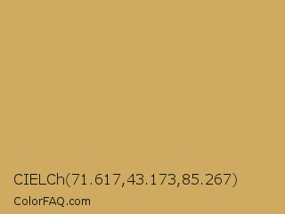 CIELCh 71.617,43.173,85.267 Color is a normal orange color and the nearest color is Sundance #c9b35b. Hex code #ceab60 and RGB value is rgb(206,171,96). In RGB color space, this color is composed of 81% red, 67% green, 38% blue, In CMYK color space, this color is composed of 0% cyan, 17% magenta, 53% yellow , 19% black , In HSL color space, this color has a hue angle of 41° , 53% saturation and 59% lightness.