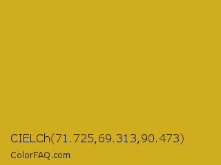 CIELCh 71.725,69.313,90.473 Color is a normal yellow color and the nearest color is Lemon Curry #cca01d. Hex code #cfad1f and RGB value is rgb(207,173,31). In RGB color space, this color is composed of 81% red, 68% green, 12% blue, In CMYK color space, this color is composed of 0% cyan, 16% magenta, 85% yellow , 19% black , In HSL color space, this color has a hue angle of 48° , 74% saturation and 47% lightness.