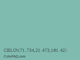 CIELCh 71.734,21.473,181.42 Color is a light cyan color and the nearest color is Gulf Stream #80b3ae. Hex code #80bbb0 and RGB value is rgb(128,187,176). In RGB color space, this color is composed of 50% red, 73% green, 69% blue, In CMYK color space, this color is composed of 32% cyan, 0% magenta, 6% yellow , 27% black , In HSL color space, this color has a hue angle of 169° , 30% saturation and 62% lightness.