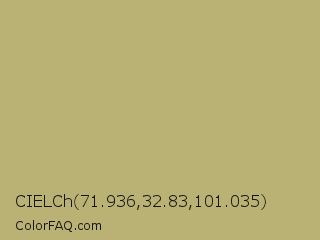 CIELCh 71.936,32.83,101.035 Color is a normal yellow color and the nearest color is Misty Moss #bbb477. Hex code #bab275 and RGB value is rgb(186,178,117). In RGB color space, this color is composed of 73% red, 70% green, 46% blue, In CMYK color space, this color is composed of 0% cyan, 4% magenta, 37% yellow , 27% black , In HSL color space, this color has a hue angle of 53° , 33% saturation and 59% lightness.