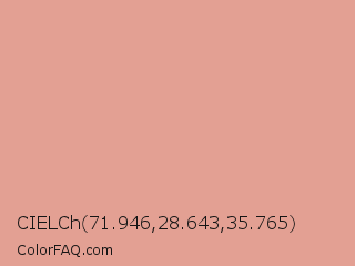 CIELCh 71.946,28.643,35.765 Color is a light red color and the nearest color is Tonys Pink #e79f8c. Hex code #e3a093 and RGB value is rgb(227,160,147). In RGB color space, this color is composed of 89% red, 63% green, 58% blue, In CMYK color space, this color is composed of 0% cyan, 30% magenta, 35% yellow , 11% black , In HSL color space, this color has a hue angle of 10° , 59% saturation and 73% lightness.