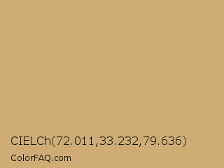 CIELCh 72.011,33.232,79.636 Color is a light orange color and the nearest color is Light French Beige #c8ad7f. Hex code #cfab75 and RGB value is rgb(207,171,117). In RGB color space, this color is composed of 81% red, 67% green, 46% blue, In CMYK color space, this color is composed of 0% cyan, 17% magenta, 43% yellow , 19% black , In HSL color space, this color has a hue angle of 36° , 48% saturation and 64% lightness.