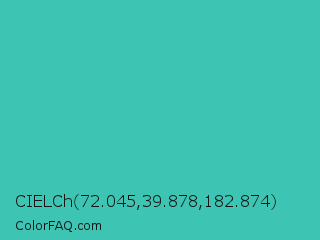 CIELCh 72.045,39.878,182.874 Color is a normal cyan color and the nearest color is Puerto Rico #3fc1aa. Hex code #3dc4b3 and RGB value is rgb(61,196,179). In RGB color space, this color is composed of 24% red, 77% green, 70% blue, In CMYK color space, this color is composed of 69% cyan, 0% magenta, 9% yellow , 23% black , In HSL color space, this color has a hue angle of 172° , 53% saturation and 50% lightness.