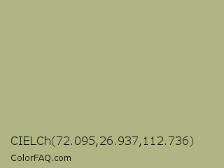 CIELCh 72.095,26.937,112.736 Color is a light yellow color and the nearest color is Swamp Green #acb78e. Hex code #afb583 and RGB value is rgb(175,181,131). In RGB color space, this color is composed of 69% red, 71% green, 51% blue, In CMYK color space, this color is composed of 3% cyan, 0% magenta, 28% yellow , 29% black , In HSL color space, this color has a hue angle of 67° , 25% saturation and 61% lightness.