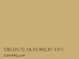 CIELCh 72.18,33.892,87.107 Color is a light orange color and the nearest color is Light French Beige #c8ad7f. Hex code #c9ae73 and RGB value is rgb(201,174,115). In RGB color space, this color is composed of 79% red, 68% green, 45% blue, In CMYK color space, this color is composed of 0% cyan, 13% magenta, 43% yellow , 21% black , In HSL color space, this color has a hue angle of 41° , 44% saturation and 62% lightness.