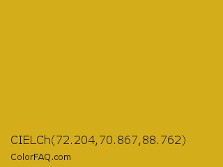 CIELCh 72.204,70.867,88.762 Color is a normal yellow color and the nearest color is Golden Grass #daa520. Hex code #d4ad1b and RGB value is rgb(212,173,27). In RGB color space, this color is composed of 83% red, 68% green, 11% blue, In CMYK color space, this color is composed of 0% cyan, 18% magenta, 87% yellow , 17% black , In HSL color space, this color has a hue angle of 47° , 77% saturation and 47% lightness.