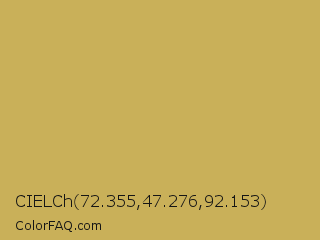 CIELCh 72.355,47.276,92.153 Color is a normal yellow color and the nearest color is Sundance #c9b35b. Hex code #c9b059 and RGB value is rgb(201,176,89). In RGB color space, this color is composed of 79% red, 69% green, 35% blue, In CMYK color space, this color is composed of 0% cyan, 12% magenta, 56% yellow , 21% black , In HSL color space, this color has a hue angle of 47° , 51% saturation and 57% lightness.