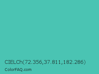 CIELCh 72.356,37.811,182.286 Color is a normal cyan color and the nearest color is Puerto Rico #3fc1aa. Hex code #4ac4b3 and RGB value is rgb(74,196,179). In RGB color space, this color is composed of 29% red, 77% green, 70% blue, In CMYK color space, this color is composed of 62% cyan, 0% magenta, 9% yellow , 23% black , In HSL color space, this color has a hue angle of 172° , 51% saturation and 53% lightness.