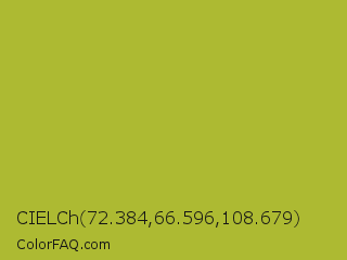 CIELCh 72.384,66.596,108.679 Color is a normal yellow color and the nearest color is Android Green #a4c639. Hex code #adba32 and RGB value is rgb(173,186,50). In RGB color space, this color is composed of 68% red, 73% green, 20% blue, In CMYK color space, this color is composed of 7% cyan, 0% magenta, 73% yellow , 27% black , In HSL color space, this color has a hue angle of 66° , 58% saturation and 46% lightness.