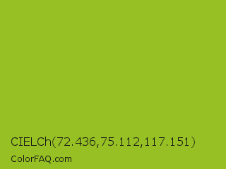 CIELCh 72.436,75.112,117.151 Color is a normal lime color and the nearest color is Atlantis #97cd2d. Hex code #96c024 and RGB value is rgb(150,192,36). In RGB color space, this color is composed of 59% red, 75% green, 14% blue, In CMYK color space, this color is composed of 22% cyan, 0% magenta, 81% yellow , 25% black , In HSL color space, this color has a hue angle of 76° , 68% saturation and 45% lightness.