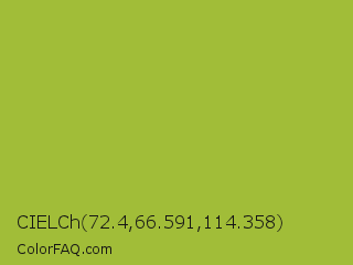 CIELCh 72.4,66.591,114.358 Color is a normal lime color and the nearest color is Android Green #a4c639. Hex code #a1bd38 and RGB value is rgb(161,189,56). In RGB color space, this color is composed of 63% red, 74% green, 22% blue, In CMYK color space, this color is composed of 15% cyan, 0% magenta, 70% yellow , 26% black , In HSL color space, this color has a hue angle of 73° , 54% saturation and 48% lightness.