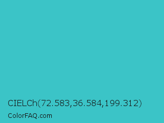 CIELCh 72.583,36.584,199.312 Color is a normal cyan color and the nearest color is Maximum Blue Green #30bfbf. Hex code #3bc4c7 and RGB value is rgb(59,196,199). In RGB color space, this color is composed of 23% red, 77% green, 78% blue, In CMYK color space, this color is composed of 70% cyan, 2% magenta, 0% yellow , 22% black , In HSL color space, this color has a hue angle of 181° , 56% saturation and 51% lightness.