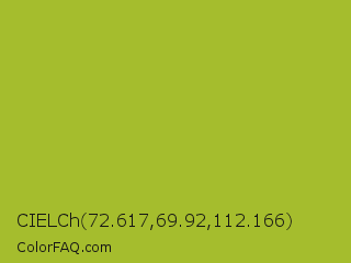 CIELCh 72.617,69.92,112.166 Color is a normal yellow color and the nearest color is Android Green #a4c639. Hex code #a5bd2d and RGB value is rgb(165,189,45). In RGB color space, this color is composed of 65% red, 74% green, 18% blue, In CMYK color space, this color is composed of 13% cyan, 0% magenta, 76% yellow , 26% black , In HSL color space, this color has a hue angle of 70° , 62% saturation and 46% lightness.
