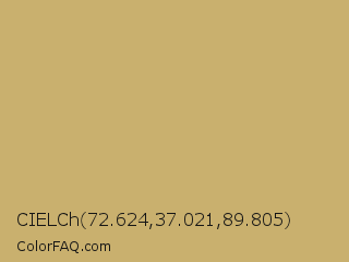 CIELCh 72.624,37.021,89.805 Color is a light orange color and the nearest color is Laser #c8b568. Hex code #c9b06e and RGB value is rgb(201,176,110). In RGB color space, this color is composed of 79% red, 69% green, 43% blue, In CMYK color space, this color is composed of 0% cyan, 12% magenta, 45% yellow , 21% black , In HSL color space, this color has a hue angle of 44° , 46% saturation and 61% lightness.