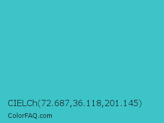 CIELCh 72.687,36.118,201.145 Color is a normal cyan color and the nearest color is Sea Serpent #4bc7cf. Hex code #3dc4c9 and RGB value is rgb(61,196,201). In RGB color space, this color is composed of 24% red, 77% green, 79% blue, In CMYK color space, this color is composed of 70% cyan, 2% magenta, 0% yellow , 21% black , In HSL color space, this color has a hue angle of 182° , 56% saturation and 51% lightness.