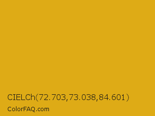CIELCh 72.703,73.038,84.601 Color is a normal orange color and the nearest color is Urobilin #e1ad21. Hex code #deab16 and RGB value is rgb(222,171,22). In RGB color space, this color is composed of 87% red, 67% green, 9% blue, In CMYK color space, this color is composed of 0% cyan, 23% magenta, 90% yellow , 13% black , In HSL color space, this color has a hue angle of 45° , 82% saturation and 48% lightness.