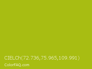 CIELCh 72.736,75.965,109.991 Color is a normal yellow color and the nearest color is Acid Green #b0bf1a. Hex code #a8bd12 and RGB value is rgb(168,189,18). In RGB color space, this color is composed of 66% red, 74% green, 7% blue, In CMYK color space, this color is composed of 11% cyan, 0% magenta, 90% yellow , 26% black , In HSL color space, this color has a hue angle of 67° , 83% saturation and 41% lightness.