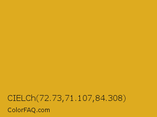 CIELCh 72.73,71.107,84.308 Color is a normal orange color and the nearest color is Urobilin #e1ad21. Hex code #deab1f and RGB value is rgb(222,171,31). In RGB color space, this color is composed of 87% red, 67% green, 12% blue, In CMYK color space, this color is composed of 0% cyan, 23% magenta, 86% yellow , 13% black , In HSL color space, this color has a hue angle of 44° , 75% saturation and 50% lightness.