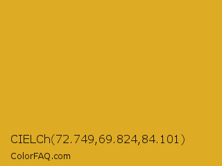 CIELCh 72.749,69.824,84.101 Color is a normal orange color and the nearest color is Urobilin #e1ad21. Hex code #deab24 and RGB value is rgb(222,171,36). In RGB color space, this color is composed of 87% red, 67% green, 14% blue, In CMYK color space, this color is composed of 0% cyan, 23% magenta, 84% yellow , 13% black , In HSL color space, this color has a hue angle of 44° , 74% saturation and 51% lightness.